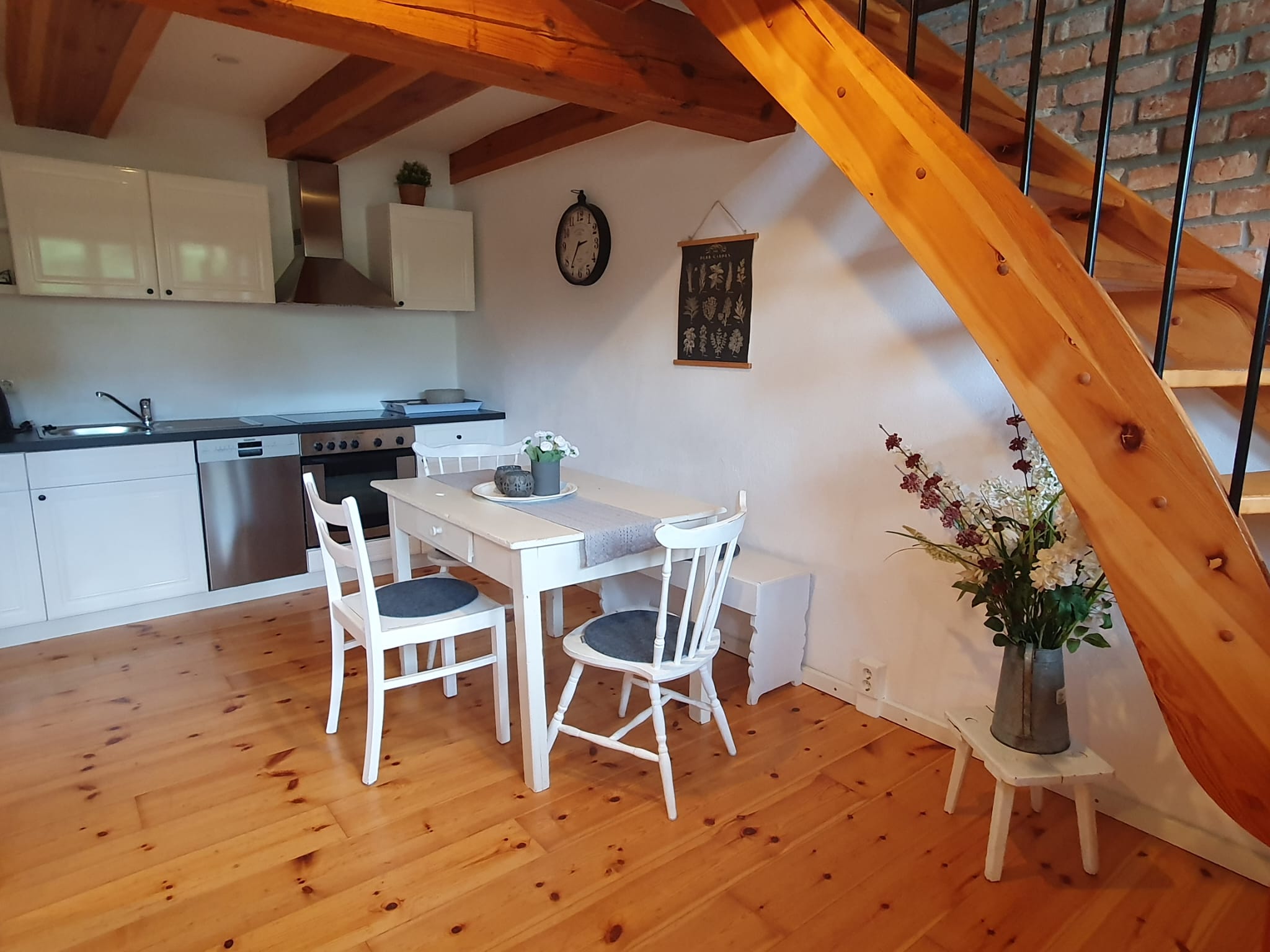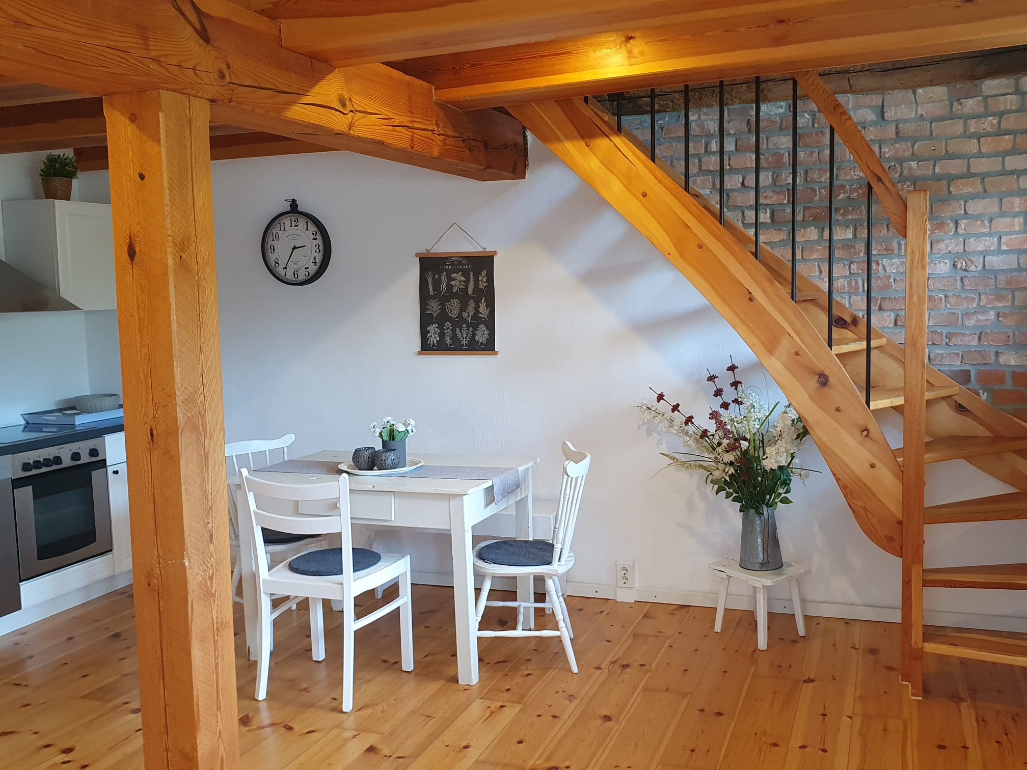 Für den Urlaub mit der Familie steht in der Pension Alter Speicher den Urlaubern die Ferienwohnung „Weidenröschen“ zur Verfügung. Im Erdgeschoss steht den Gästen eine 19 qm große, vollausgestattete Küche inklusive Geschirrspüler zur Verfügung, die den Urlaub für Selbstversorger zu einem komfortablen Vergnügen macht. Der im Obergeschoss der Ferienwohnung „Weidenröschen“ gelegene 20 qm große Wohn- und Schlafraum bietet neben dem Doppelbett auch ein Ecksofa mit Schlaffunktion. Ein besonderes Highlight: Unser idyllischer Naturbadeteich im hinteren Teil des Hofes lädt zum Entspannen und Verweilen ein.